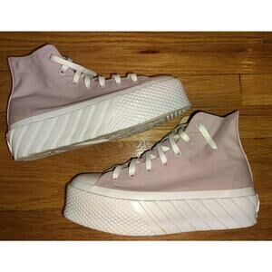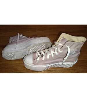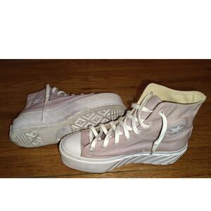 Step up your shoe game with these adorable pink platform Converse sneakers! These shoes are in great condition and ready for a new home. The platform adds a fun, trendy touch to the classic Converse style. Perfect for adding a pop of color to any outfit. Comfortable and stylish, these sneakers are a must-have for any Converse lover!