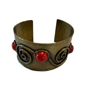 Vintage Red Brown/Gold Cuff Bracelet Costume Jewelry