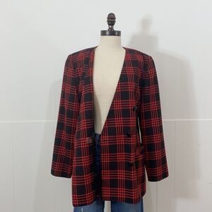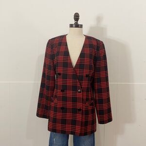 Vintage Red Buffalo Check Double Breasted Blazer