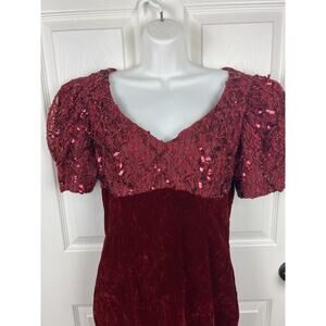 Vintage Amanda Taylor Dress Short Red Velvet Sequins Puff Sleeves Women's 8