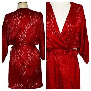 Vintage Red Burnout Animal Print Lingerie Robe - 1X