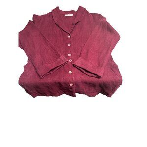 This linen blazer offers a lightweight yet structured design with a button-down front and notched lapel collar. The vibrant red hue enhances its versatile, professional look.
