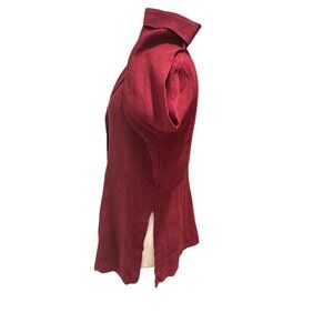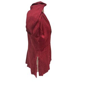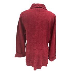 Vintage Red Button-Down Long-Sleeve Linen Blazer Jacket With Notched Lapel Colla