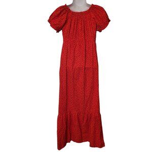Vintage Red Calico Floral Puff Sleeve Maxi Dress Modest Prairie Western Cottagec