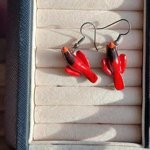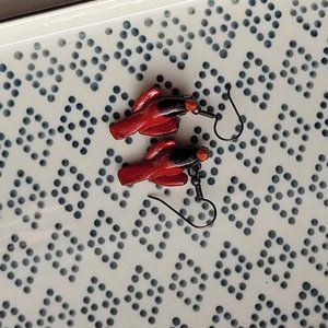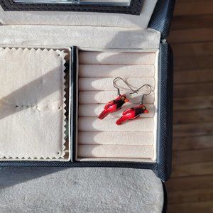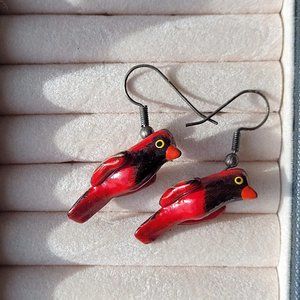 Vintage Red Cardinal Bird earrings - Hand Painted and Wooden