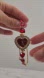 - Red watch face with gold hour markers & hands