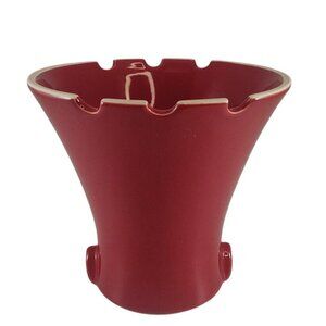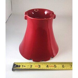 Vintage Red Ceramic Fluted Vase With Notched Rim & Center Hole