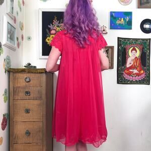 Vintage Red Chiffon Peignoir Set, 1960s Sheer Nylon Robe & Nightie by Warners S