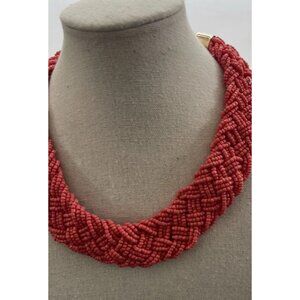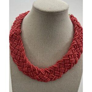 Vintage Red Color Seed Bead Multi strain Braid Beaded Collar Choker Necklace 17”
