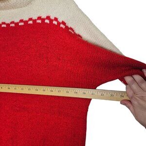 Vintage Red & Cream Handmade Acrylic Knit Sweater With Turtleneck Long Sleeves M
