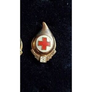 Vintage Red Cross Teardrop Blood Donor Pins Lot of 3 - 3537 You are bidding on Vintage Red Cross Teardrop Blood Donor Pins Lot of 5 . For use as a tie tack or lapel pin, these depict the Red Cross emblem on a gold-tone droplet with 2, 3, and 4 Gallon Donor. Review details as shown in the photos. The pins are in great condition and would be a wonderful addition to anyone's collection.