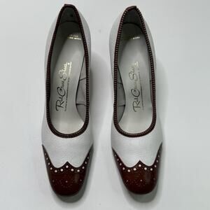 Vintage Red Cross Shoes White Brown Leather Wingtip Heels Sz 8.5 AAA RARE Pumps