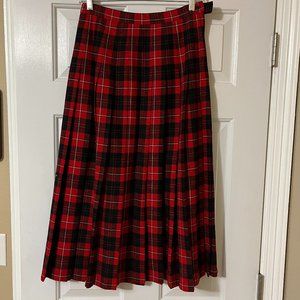 Vintage Red Cunningham Tartan Plaid Pleated Wool Skirt