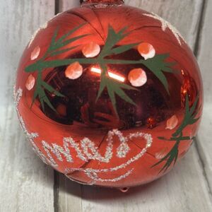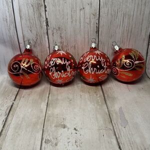 Vintage Red Decorative Merry Christmas Ornaments Holly Berry Gold Glitter 4 set