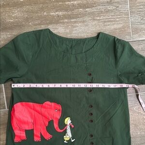 Vintage Red Elephant Green Short Sleeve Top