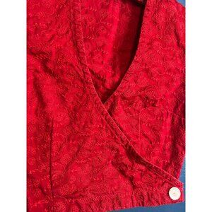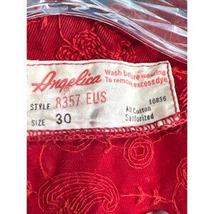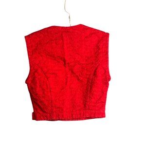 This vintage red vest by Angelica, in size 30, features elegant embroidery. Made from all cotton, it offers a unique and stylish addition to your wardrobe. Would be stunning with the top underneath or is a standalone top