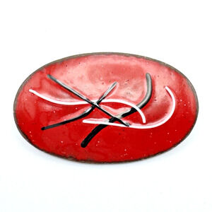 Vintage Red Enamel Over Copper Abstract MCM Modernist Pin Architectural Mod