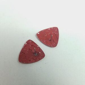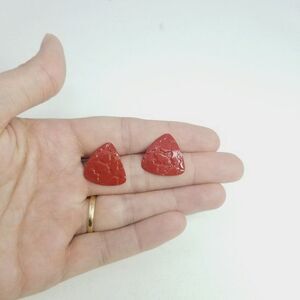 Vintage Red Enamel Triangle Shape Stud Earrings, Textured Surface, Retro 80s