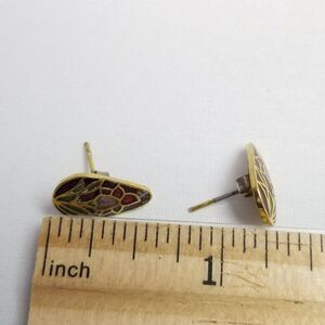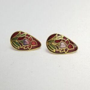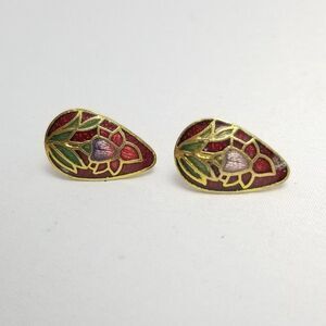 Vintage Red Enamel Flower Stud Earrings, Pear Drop Shape, 80s 90s Style