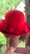 Women's vintage 100% felt wool church style hat. Red velvet ribbon bow above brim with feather accent. It looks like there was red netting underneath the bow that was cut off because a little bit of netting is peeking out from underneath the ribbon. Good pre-owned condition with light signs of wear.