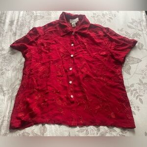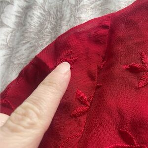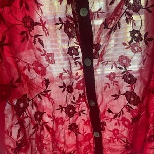 Vintage Red Floral Embroidered Sheer Button Down Shirt 90s Goth Vamp Fairy Boho