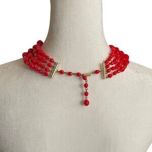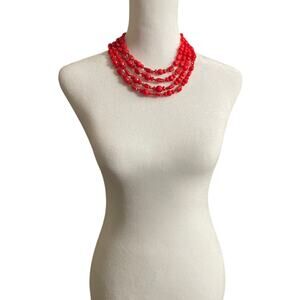 Vintage Red Four Strand Necklace Western Germany Faceted Acrylic AB Finish