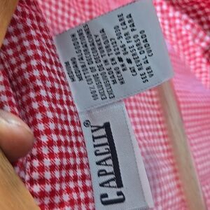 Vintage Red Ghigham Sleeveless Button-Up Shirt with Floral Embroidery Fisherman