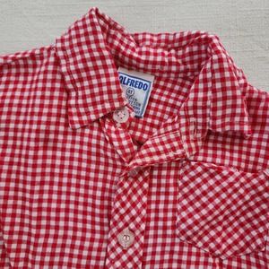 Vintage Alfredo brand made in Hong Kong soft red gingham buttondown long sleeve shirt! From 70s era most likely. Please see all photos for condition and measurements