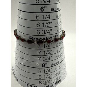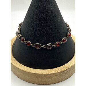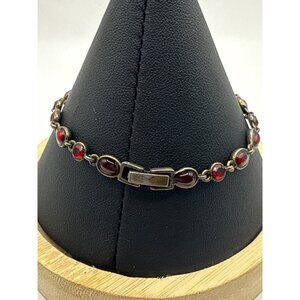 Vintage Red Glass & Brass Oval Link Bracelet With Clasp Closure