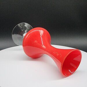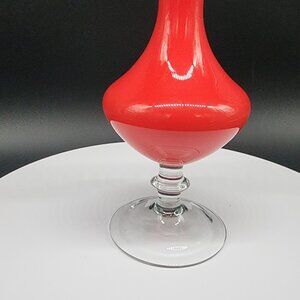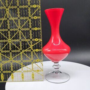 Vintage Red Glass Bud Vase With Clear Stem Solid Non Transparent Glass MCM 6.5"