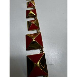 Vintage Red Gold Enamel Geometric Necklace Marc Jacobs Style Statement