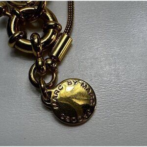 Striking geometric statement necklace featuring bold red enamel and shiny gold-tone pyramid links. This piece beautifully captures a modern designer look reminiscent of Marc Jacobs’ signature style — playful yet sophisticated. Perfect for adding a pop of color and edge to any outfit, from casual chic to elegant evening wear.
