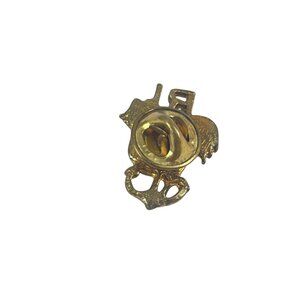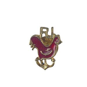 Vintage Red & Gold Enamel Rhode Islan Rooster Lapel Pin Badge Secure Clutch Back