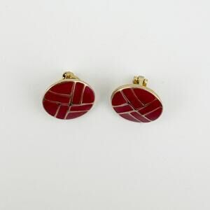 Vintage Red & Gold Geometric Enamel Clip-On Earrings
