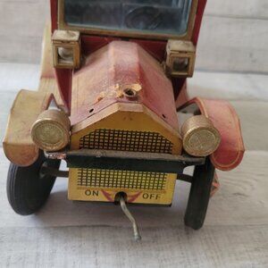 Vintage Red & Gold Tin Litho Wind-Up Car Model Grand-pa