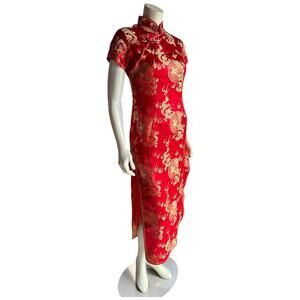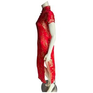 Vintage Red Golden Dragon Cheongsam Qipao Dress Size Small