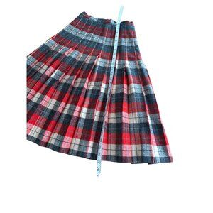 Elevate your wardrobe with this timeless vintage skirt. Its striking red plaid pattern and pleated design create a classic yet modern look. Crafted from a soft wool blend, it offers warmth and style for cooler months. Ideal for a variety of occasions, it pairs beautifully with both casual and formal attire.