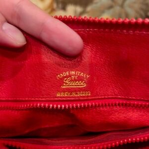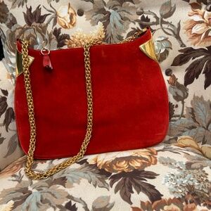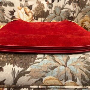 EUC Red vintage Gucci suede purse with gold accents and gold chain. 11 inch width x 8.7 inches height