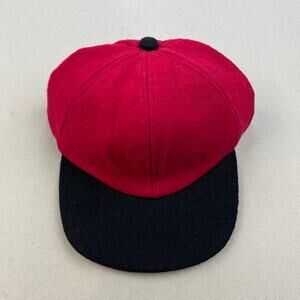 Vintage Red Hat Cap 7-1/8 Black Wool Stretch Blank 6 Panel Skater Adjustable 90s