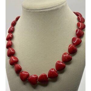 Vintage Red Heart Bead Tourquoise Howlite Beaded Necklace Women’s Sz 18”