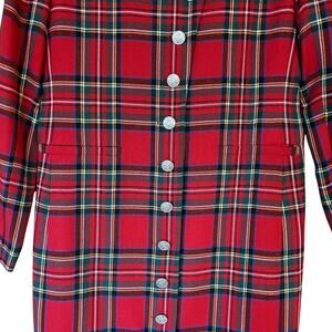 The structured, tailored cut reflects quality late 1980s–early 1990s boutique craftsmanship. The fully button-front design allows for versatile styling, worn traditionally as a dress or styled slightly open for layered looks. This piece embodies British heritage, equestrian style, classic prep, and old money aesthetics, making it ideal for holiday events and elevated winter wardrobes.