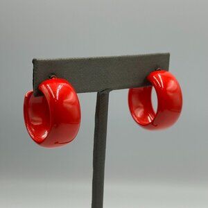 Vintage Red Hoop Earrings Enamel Metal Wide Pierced Retro Chunky 80s 90s 1"