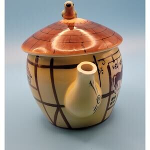 Vintage Red Horse Inn Ceramic Tea Pot English Look Cottage Ware. Beautiful tea pot. Chip inside mouth of pot and slight clip on side if spout. Lovely tea pot!!!