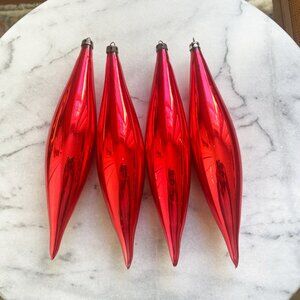 Vintage Red Icicles Set of 4 Large Mercury Glass Christmas Ornaments