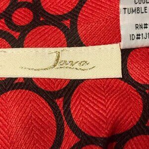 This vintage Java brand jacket/top is a women's size 2X (22/24), featuring a vibrant red base color with a dense, all-over pattern of black circles in varying sizes.