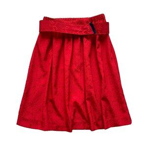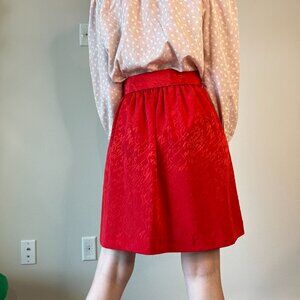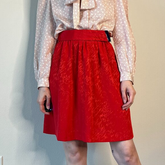 Vintage Red Jacquard Satin Mini Skirt w/Matching Belt 23" Stretch Waist