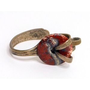 Vintage Red Jasper Fork Bracelet, Artisan Crafted