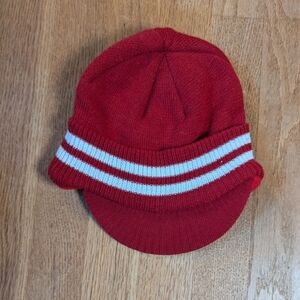 Keywords: vintage knit cap, red knit hat, retro beanie, white stripe cap, vintage-inspired accessories, winter knit hat, red beanie, retro style hat, cozy winter cap, classic knit hat, 80s style beanie, 90s knit cap, old school style, winter accessories, soft knit cap, casual beanie hat, fall fashion, warm headgear, winter outfit essential, snow day accessory, streetwear hat, unisex cap, hipster beanie.