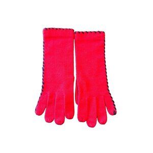 Vintage Red Knit Gloves With Black Trim Approximate Size Medium