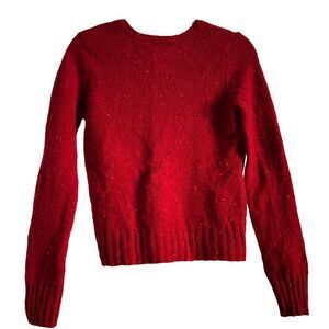 Vintage Red Lambswool Sweater Size Medium Boucle Speckled Knit Festive